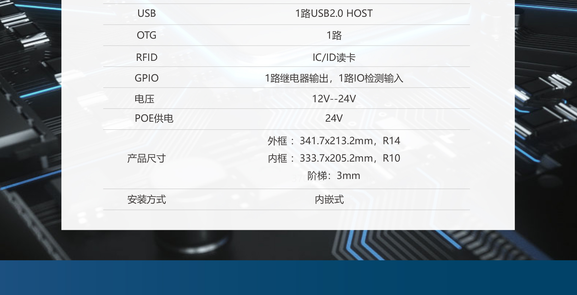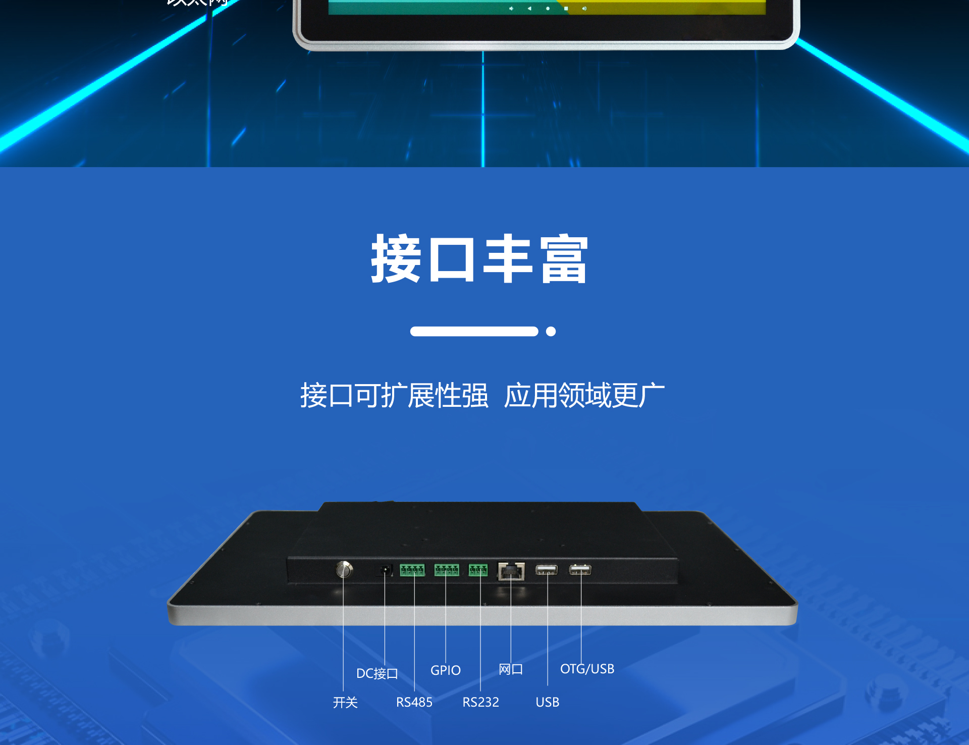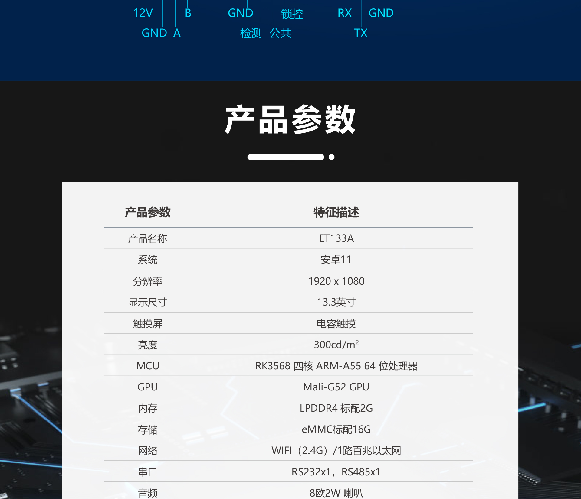 前面板采用钢化玻璃面板,全贴合工艺,有效做到防水防尘