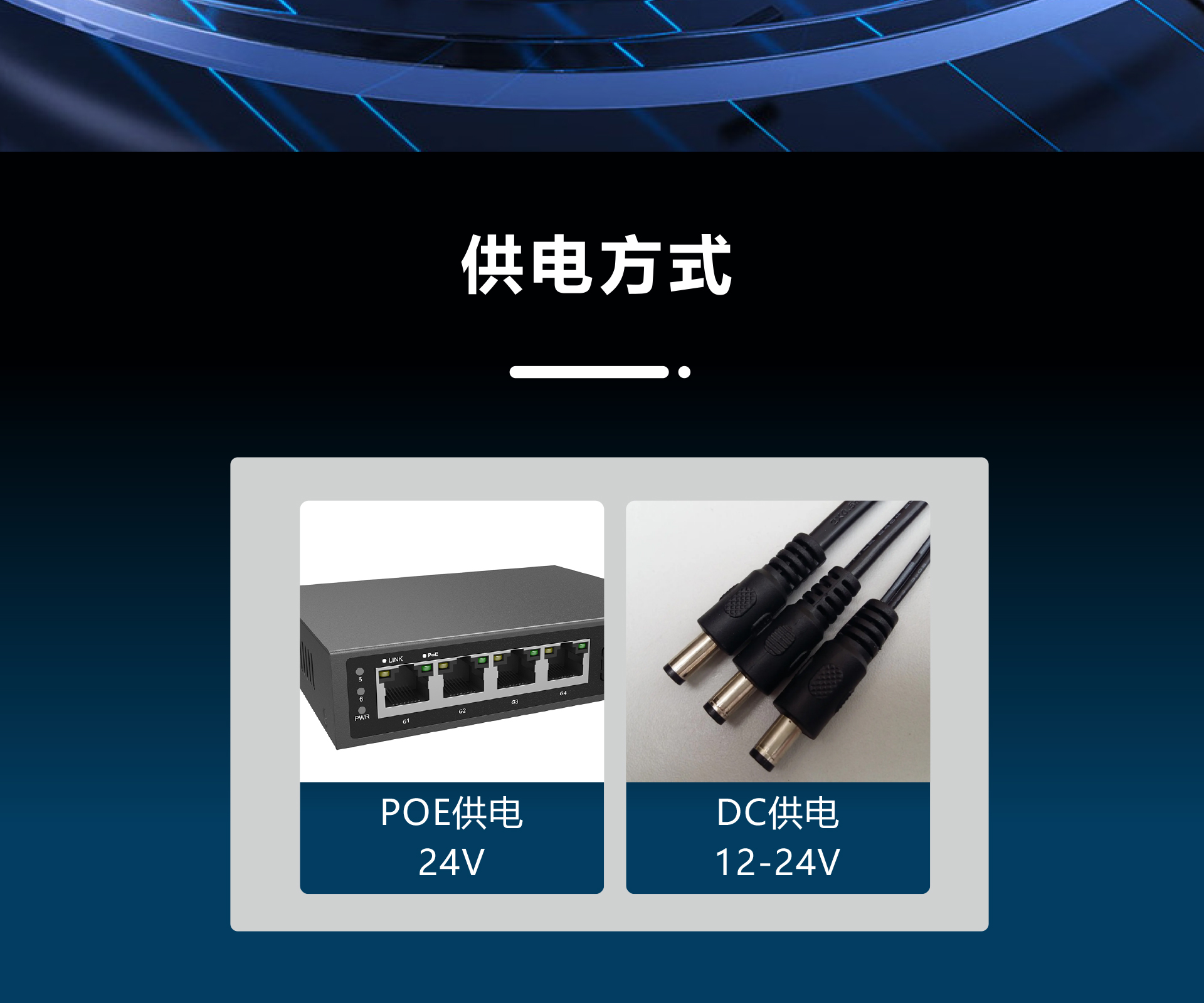 供电方式: DC12-24V POE供电 24V