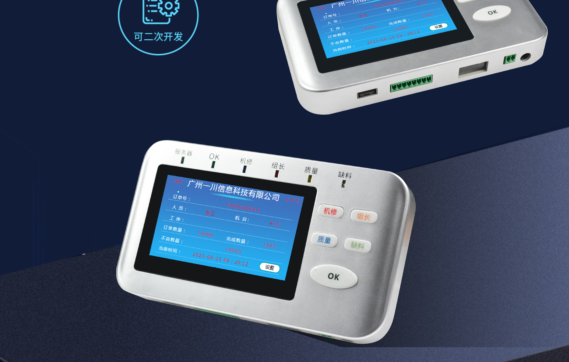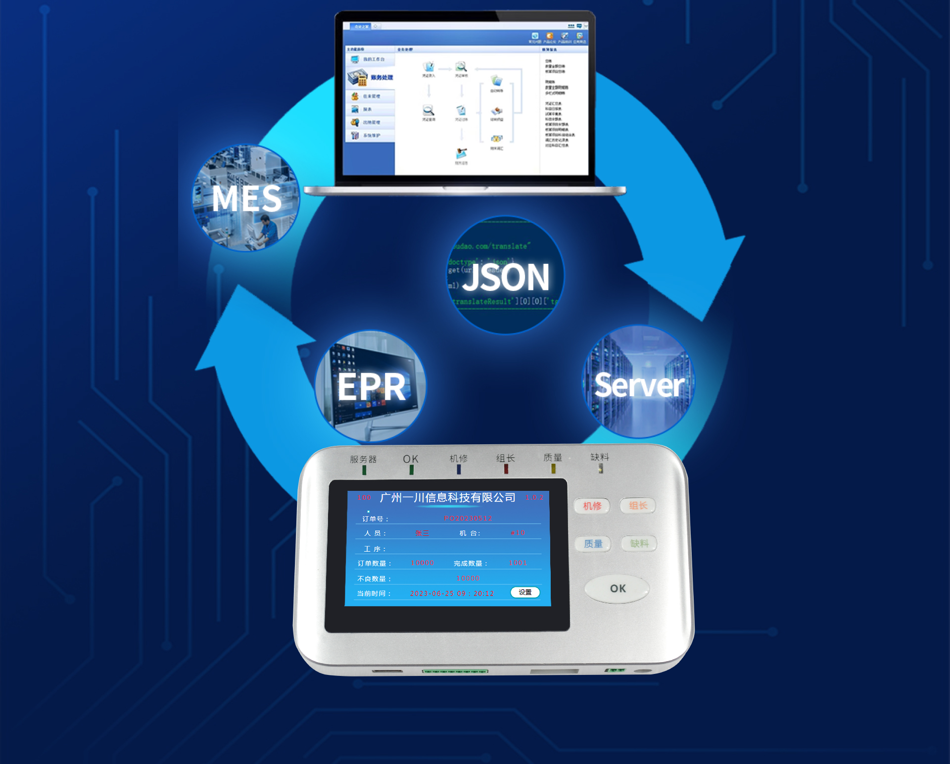ET430S MES 工位机是专为服装,加工等生产型企业设计的用于数据采集的一款产品,通过对所有工位工序进行数据采集,实现生产进度实时把控和调度。